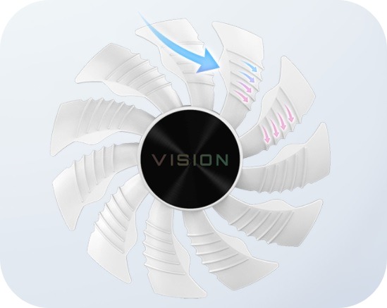 Strumień powietrza jest rozprowadzany przez trójkątną krawędź wentylatora i płynnie prowadzony przez krzywą 3D na powierzchni wentylatora.